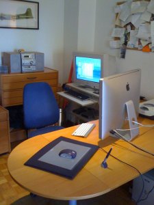 Ecco un’allegra foto della mia postazione di lavoro, dove nascono le strip di singloids e wacosky. Chissenefrega direte giustamente voi.