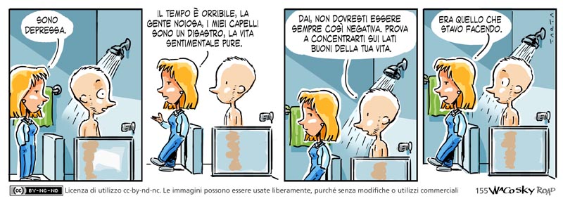 Ma sbaglio o nell’ultima vignetta si vede una “strana forma” nel trasparente dela doccia…. non è che entra in bagno oggi entra domani….
