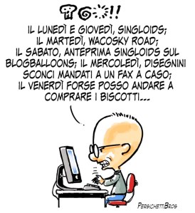 Tanto per far casino, sposto l’uscita della strip di wacosky road dal lunedì al martedì. Così andrà a coprire (per chi segue entrambe le serie) almeno uno dei tre giorni settimanali rimasti scoperti dal cambio di programmazione di singloids